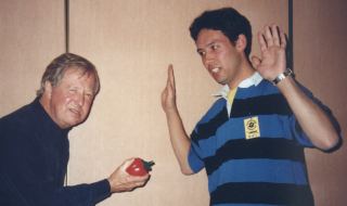 Tim, rather unexpectedly for most of us, showed up shortly afterwards, and shook hands with everyone in a row (a bit like the Queen) and was very cheerful. A few of the girls asked for (and got) hugs, though most of the blokes settled for a simple handshake. Apart from being extremely nice, he also struck me – and it wasn’t just me, other people thought so – as being a bit shorter than expected. Because The Goodies was full of gags about Bill being shorter than Graeme and Tim, this was something of a surprise. He claimed later he was 5 foot 9, and then admitted 5 foot 8 and three quarters, which was probably about right.