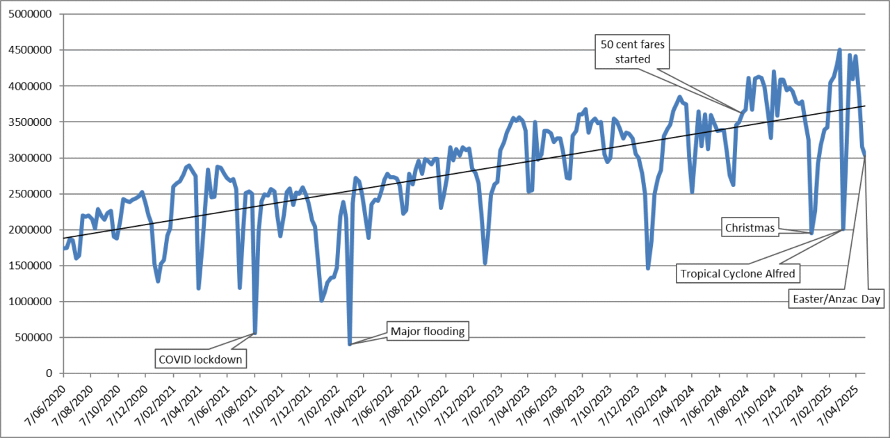 50 cent fares started on 5th August 2024 – initially planned to be temporary, but quickly made permanent. So what was the effect on patronage?