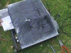 Conclusion: If you ever have to load a video recorder with explosives, make sure you are familiar with the basic layout and components of the machine. Circuit boards, tape bay, recording heads, toast, and so on.